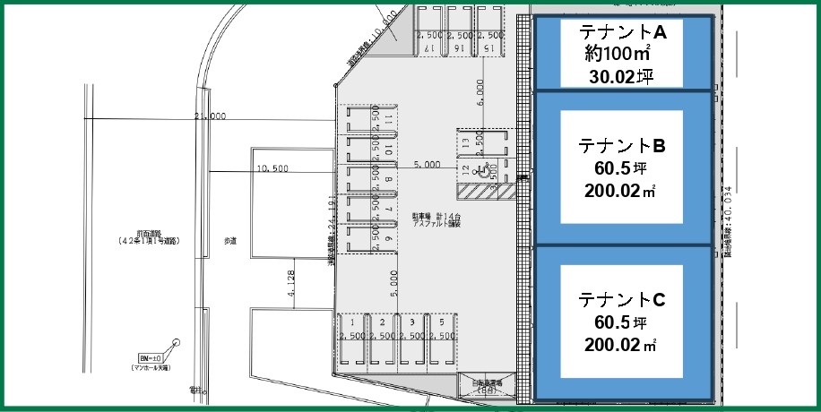 ・共用駐車場完備で、テナント3区画の募集です。